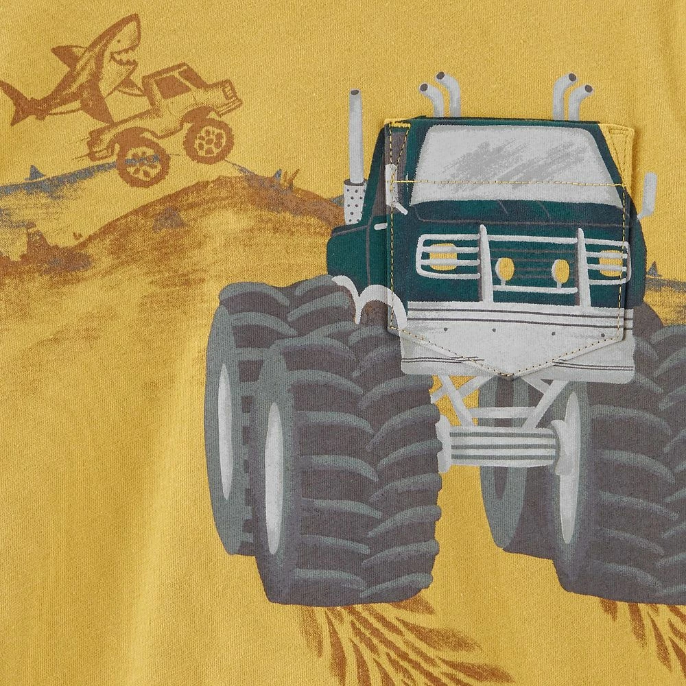 Your little man will look too cool in this baby boys’ faux layered sleeve graphic tee from Carter’s.