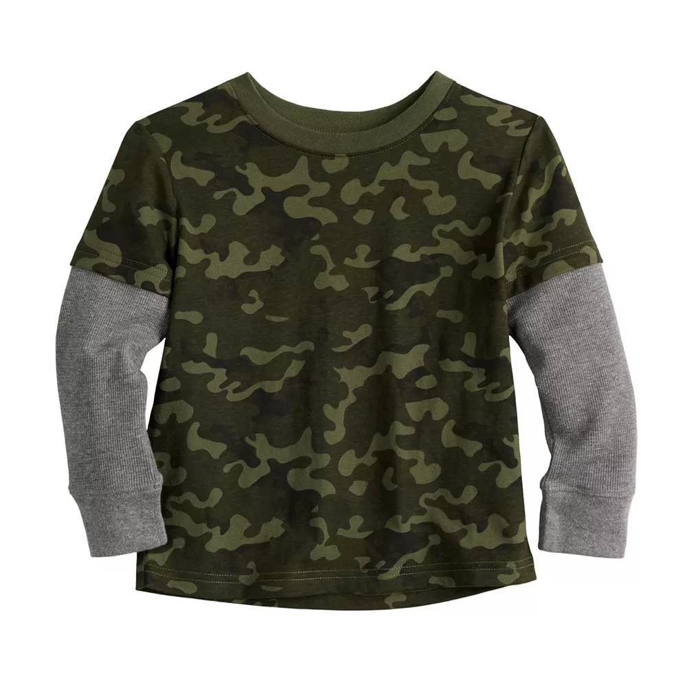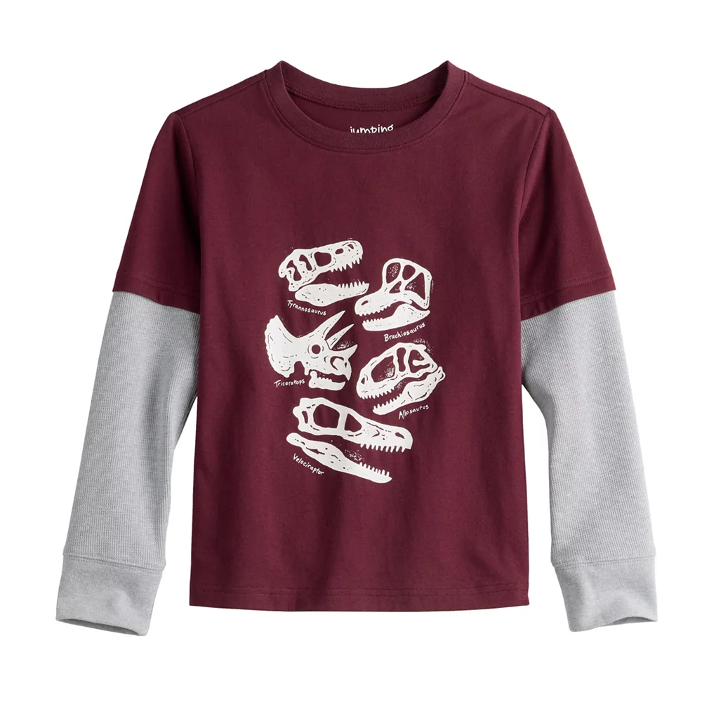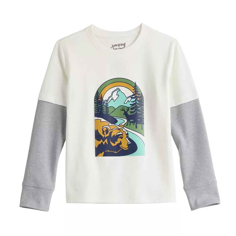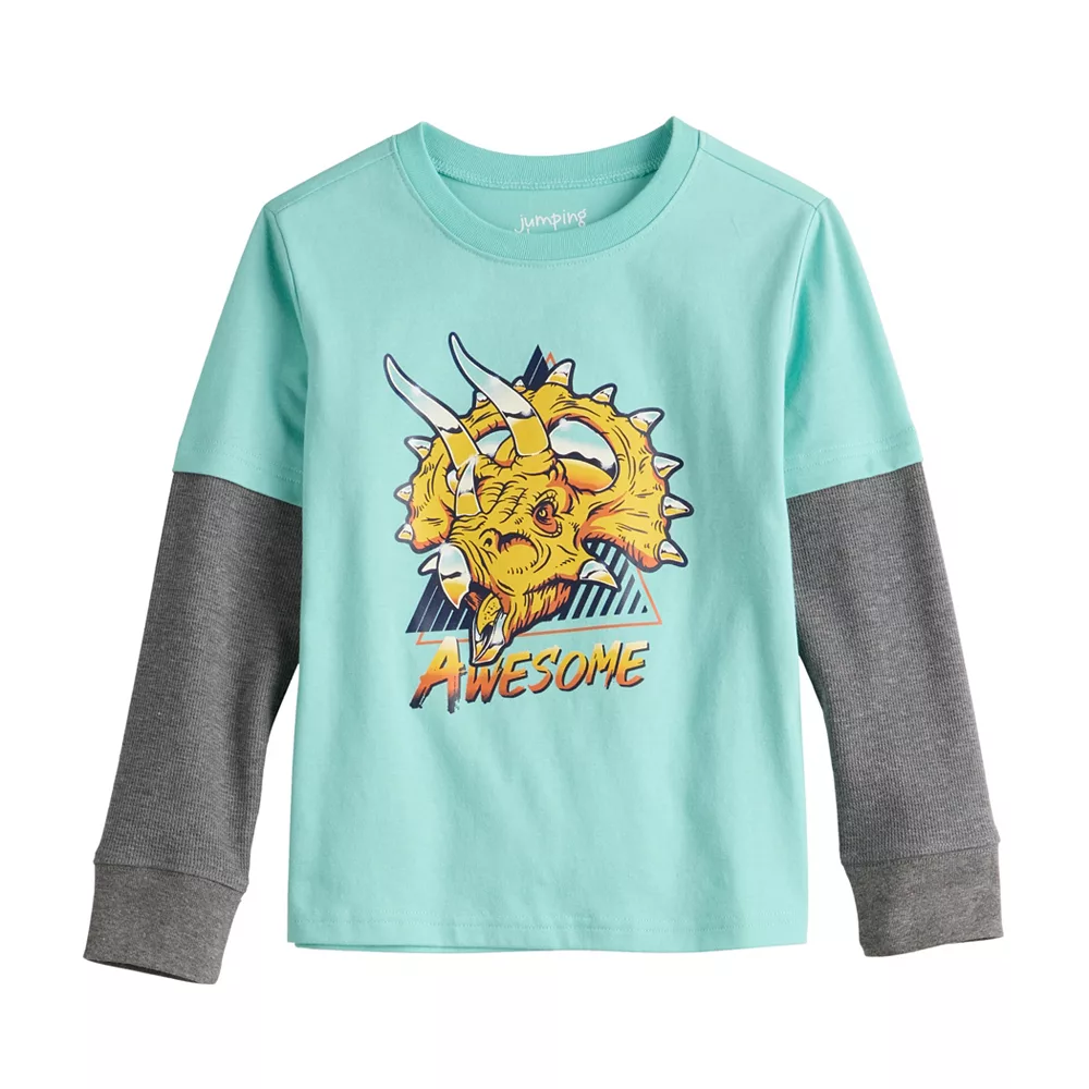 Your favorite skater dude will love his look in this boys’ thermal sleeve graphic tee from Jumping Beans.