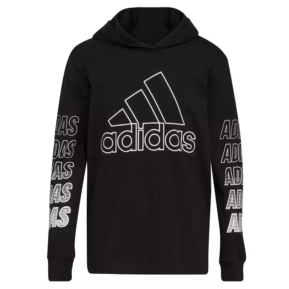 Layer his look with this sporty and soft boys’ adidas fast hooded graphic tee.