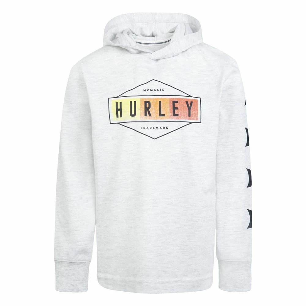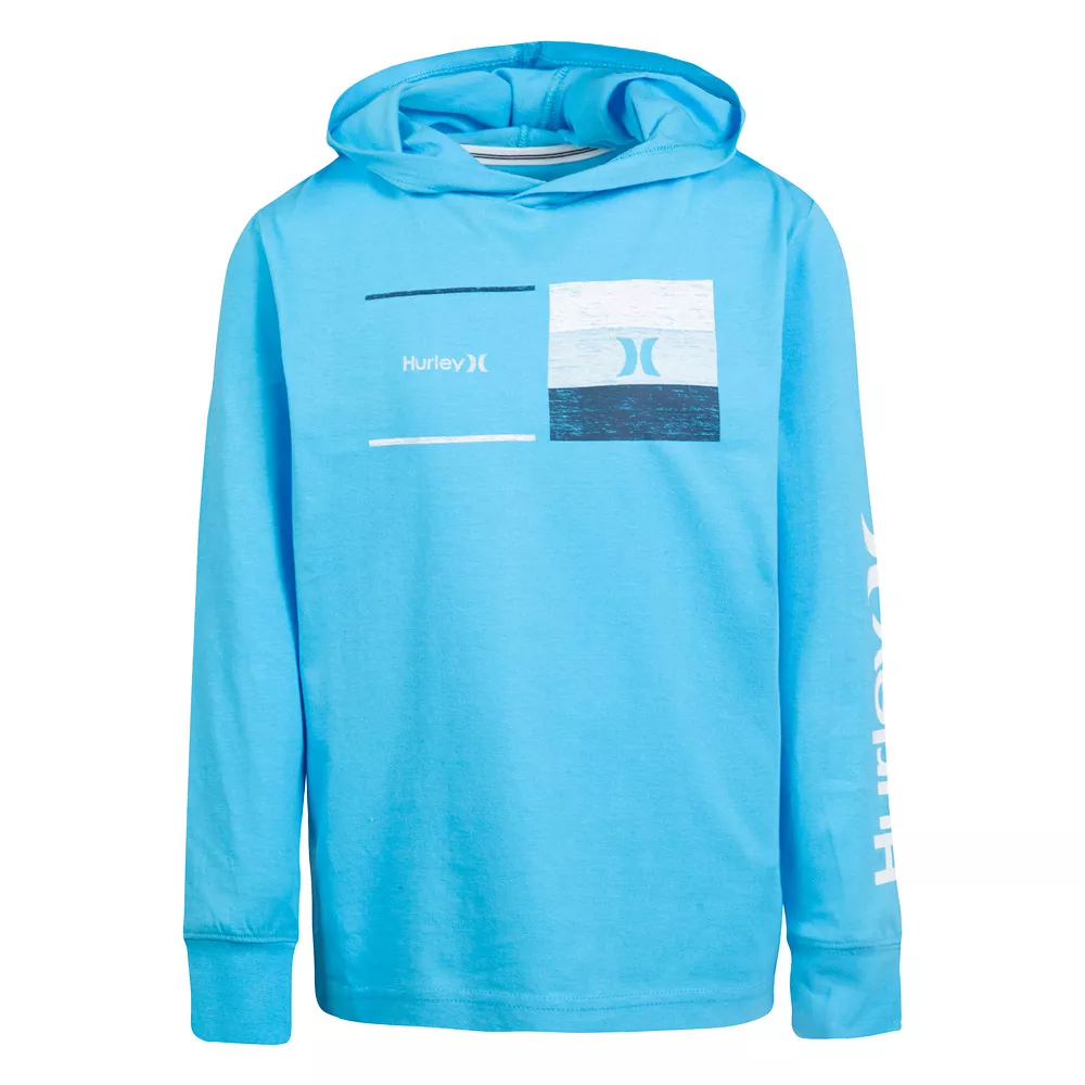 Surf’s up! Keep him cozy while he chills out in this boys’ Hurley graphic hooded tee.