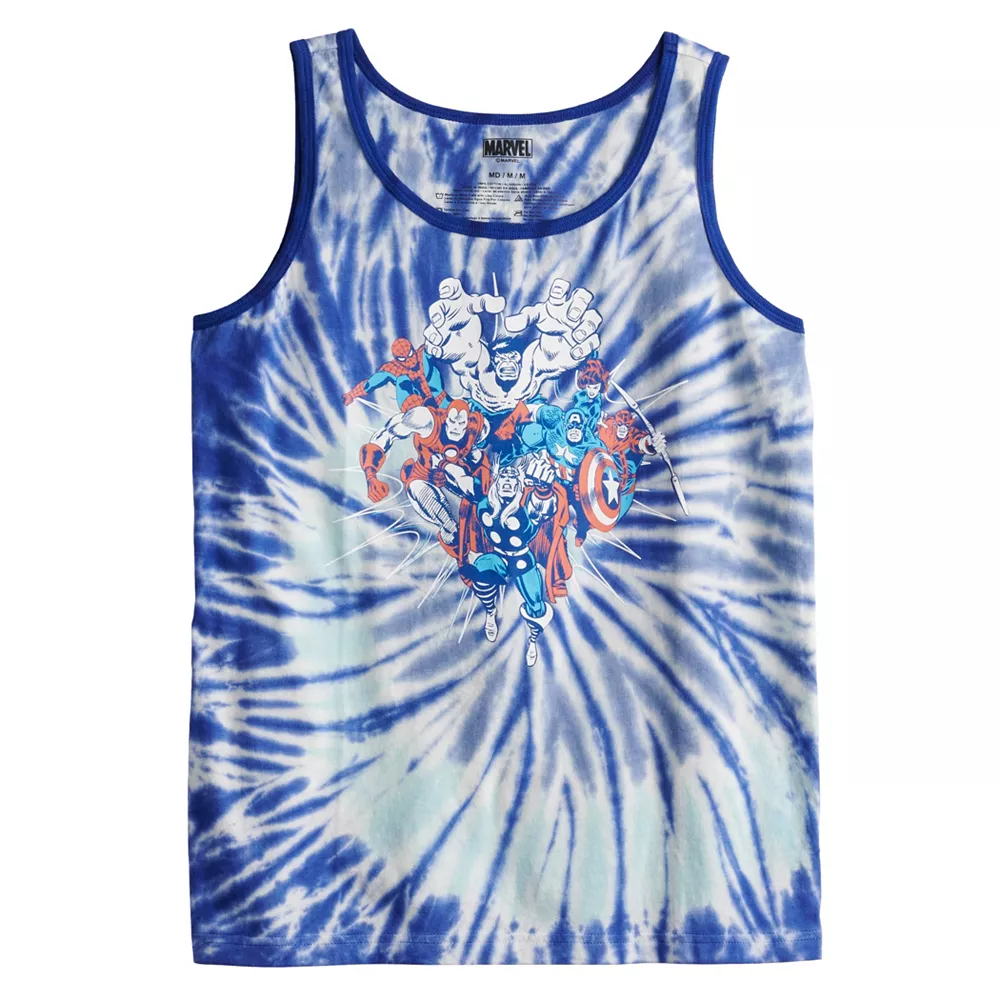 A cool tie dye background and a swinging Spider-Man graphic make this boys’ tank top from Marvel a heroic choice.