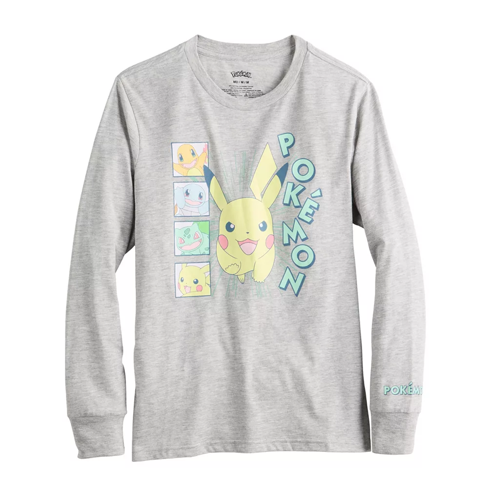 He’ll love showing off his personal style with this boys’ Pokemon Pikachu, Bulbasaur, Charmander & Squirtle Long Sleeve Graphic Tee.