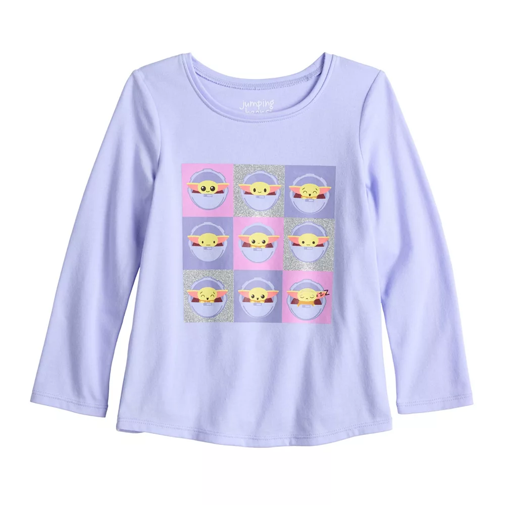 She’ll look and feel comfortable in this girls’ Jumping Beans adaptive tee, featuring Star Wars Grogu aka Baby Yoda. ©Disney