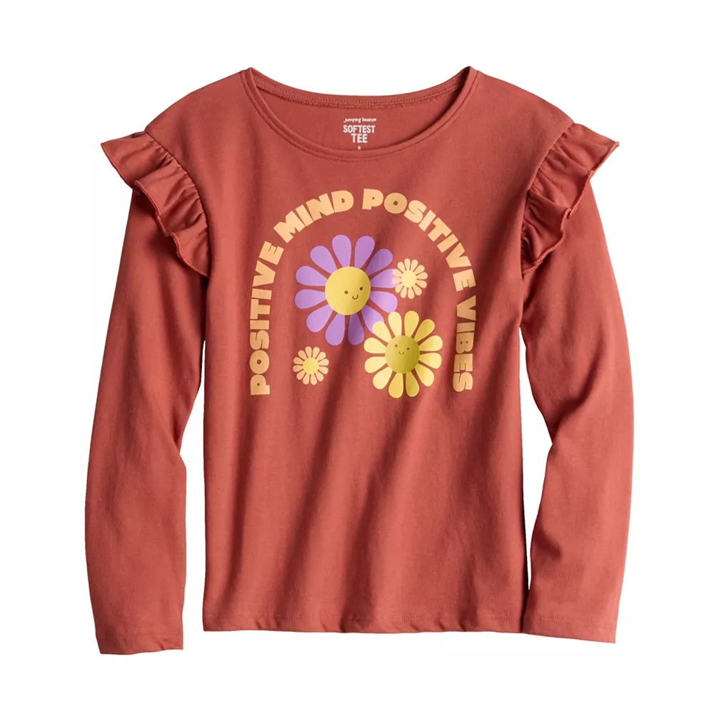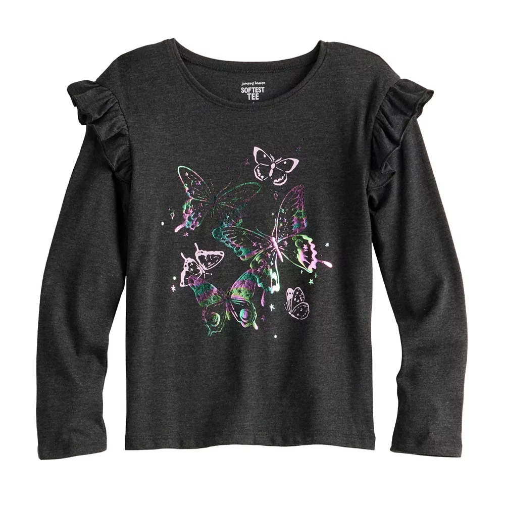 With its eye-catching ruffle shoulder details, this girls’ long sleeve tee from Jumping Beans is just the refresh her cool weather wardrobe needs.