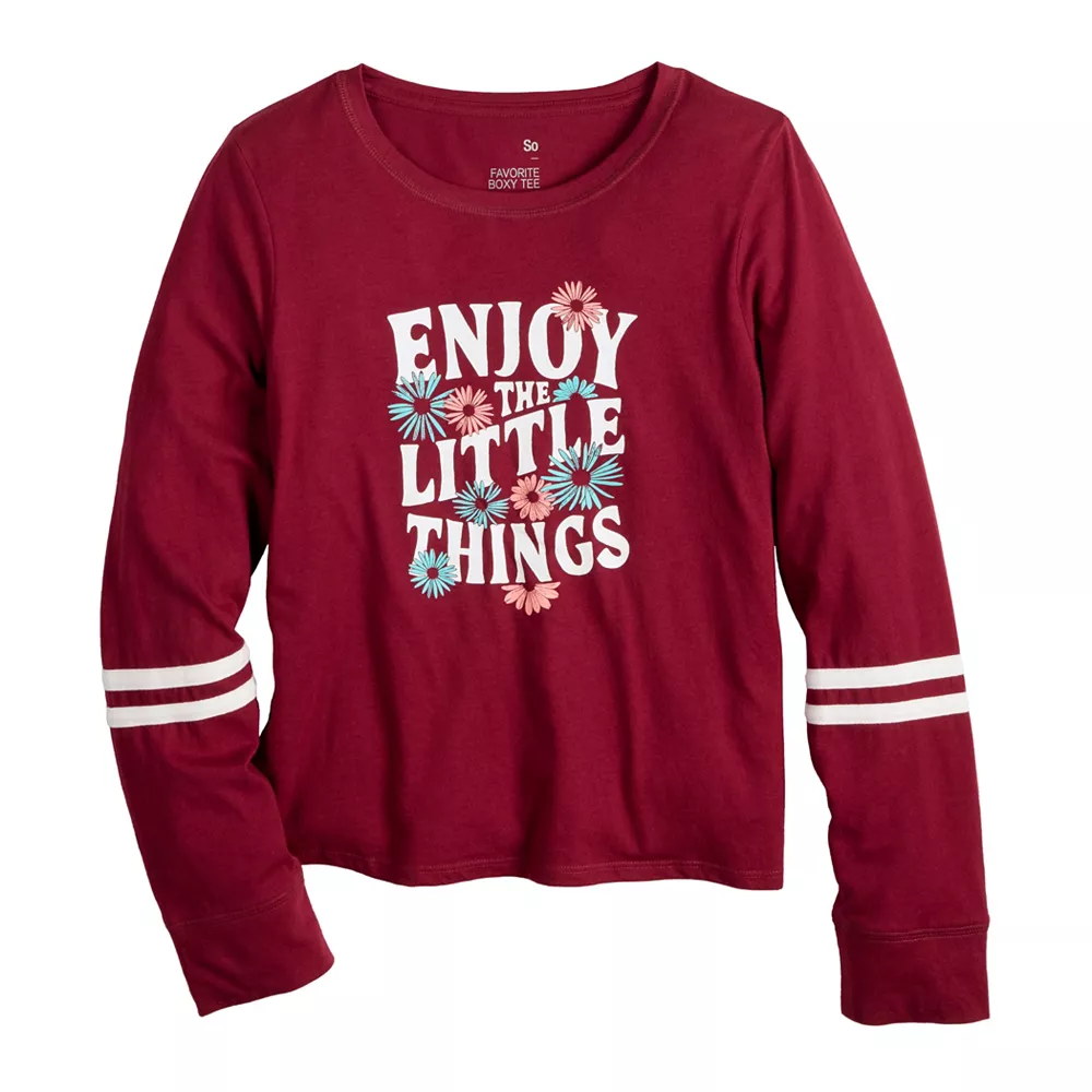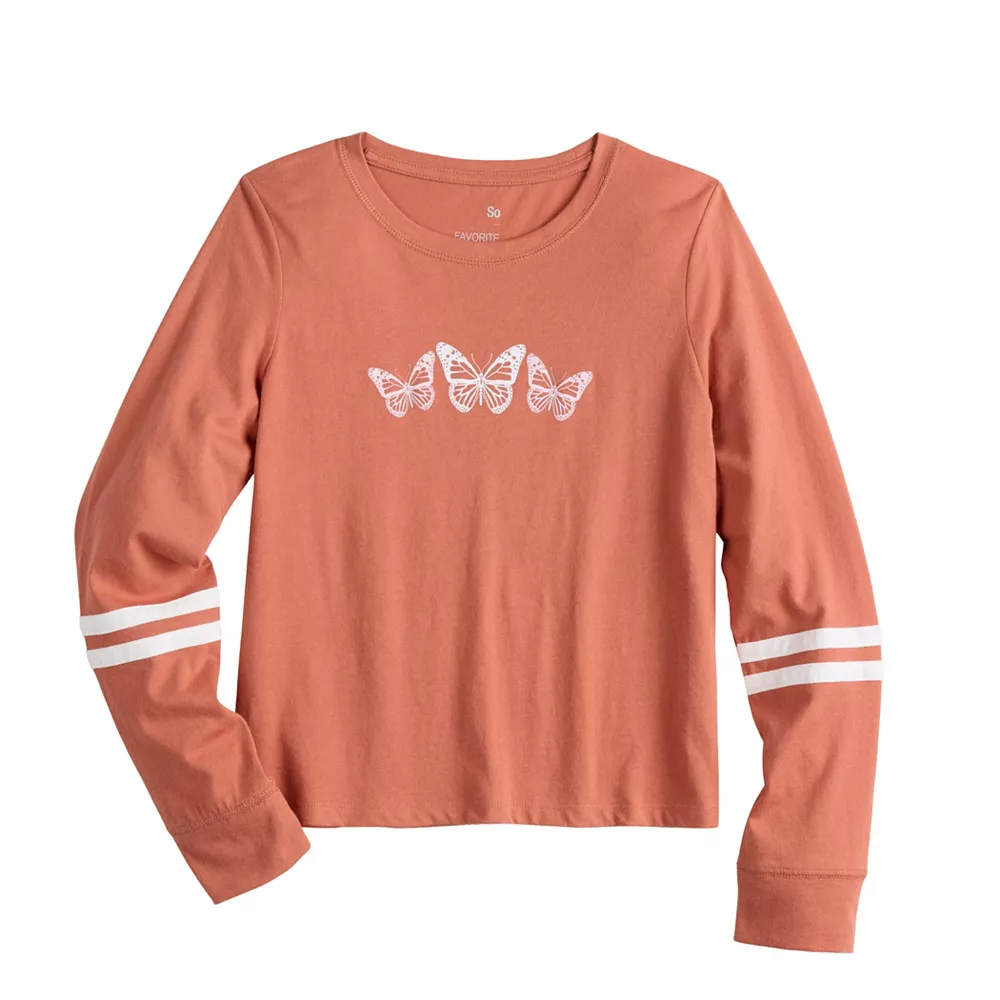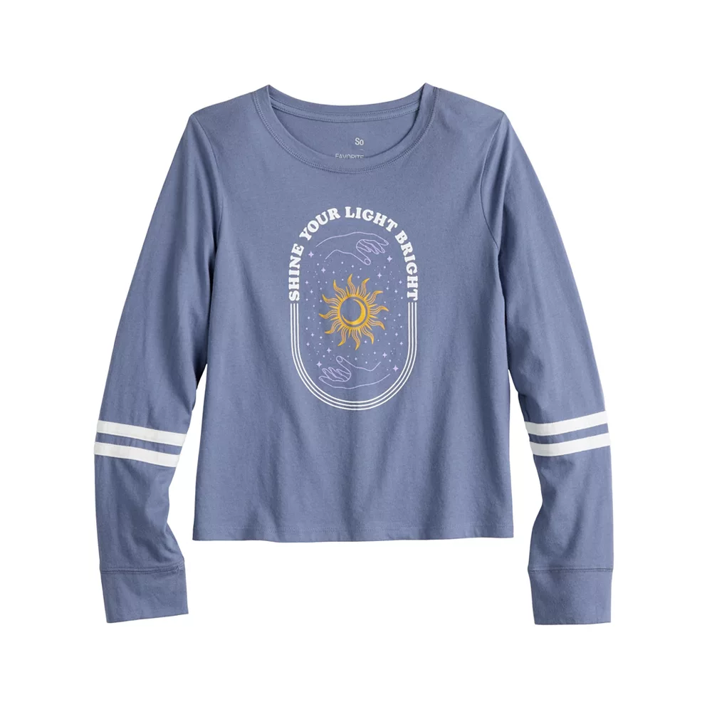 Your little lady will look so stylish in this girls’ long-sleeve tee from SO.