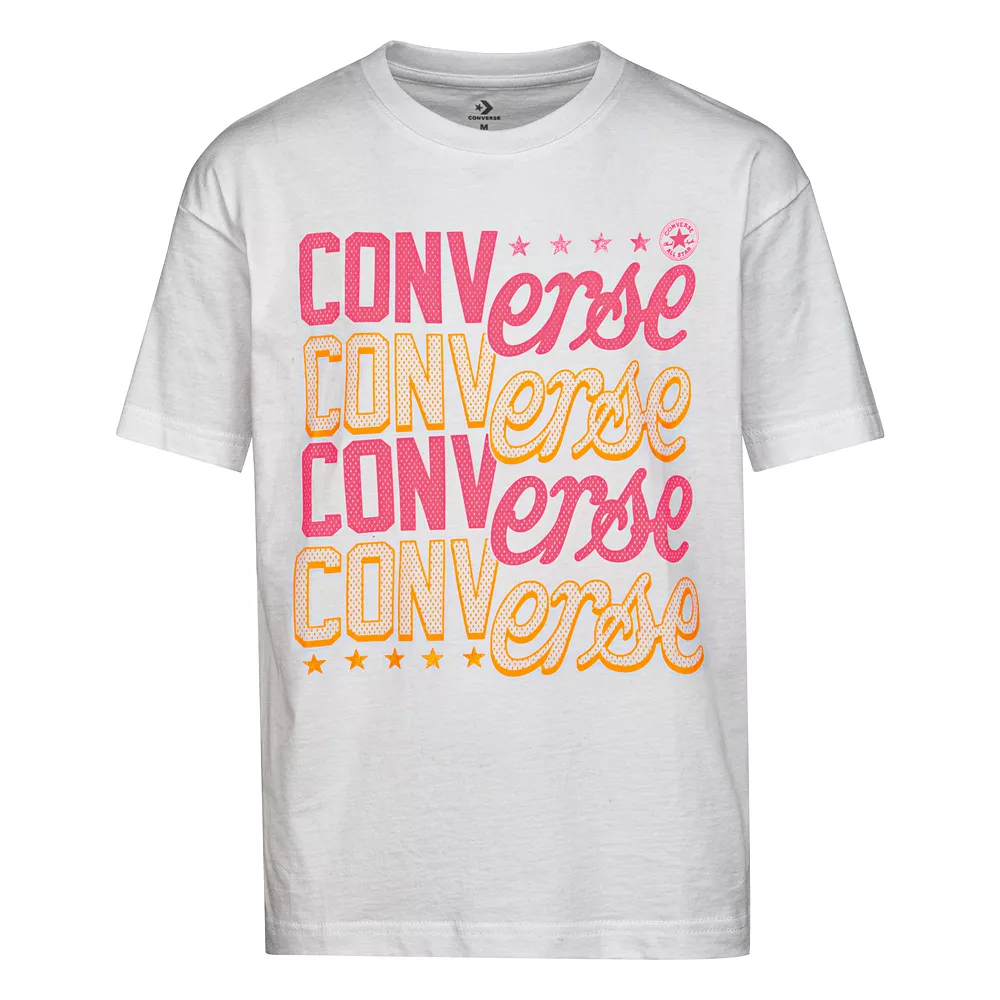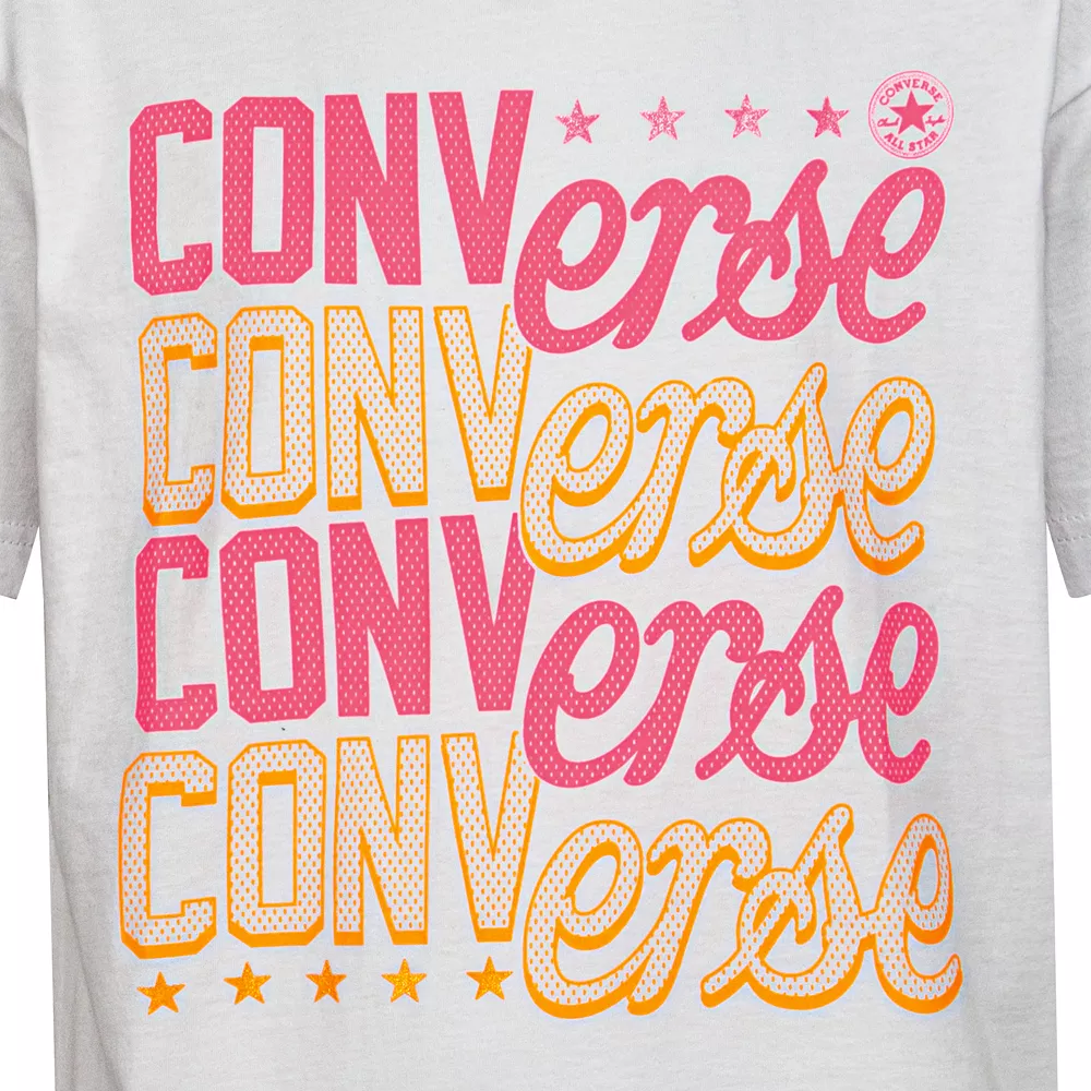 A bold graphic makes this girls’ Converse graphic tee an eye-catching choice she’ll love to wear.