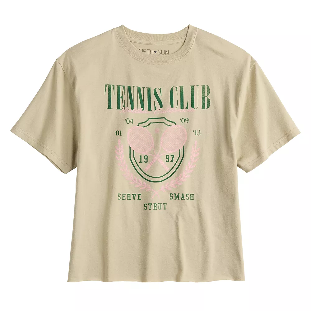 This juniors’ “Tennis Club” graphic tee is sure to be a hit.