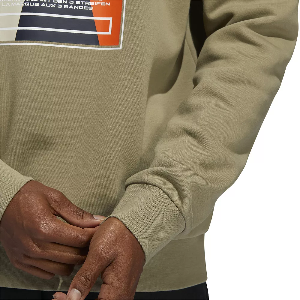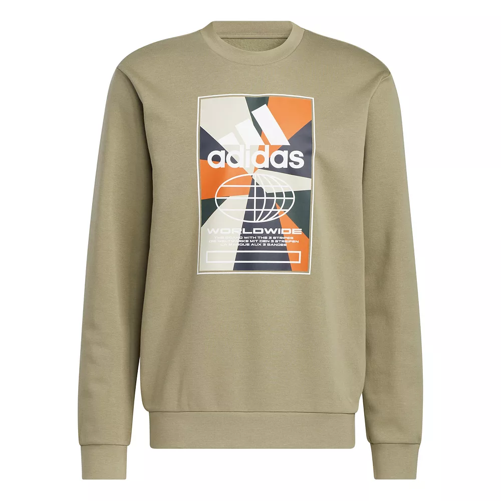 Designed for adidas fans everywhere. This bold men’s sweatshirt is printed with a ‘worldwide’ graphic. With its cozy fleece interior, it’ll be a welcome addition to your winter wardrobe, pairing easily with anything from bright running shoes to combat boots.