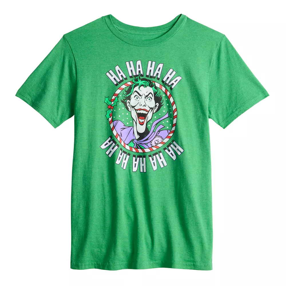 Give a laugh this holiday season with this Joker Ha Ha Ha holiday graphic tee.