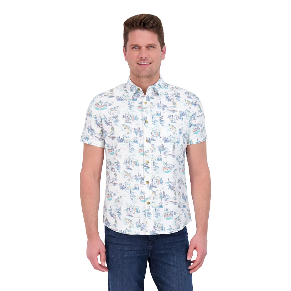 Make a stylish statement in this men’s button-down shirt from Eddie Bauer. FreeDry® moisture-wicking technology delivers constant comfort.