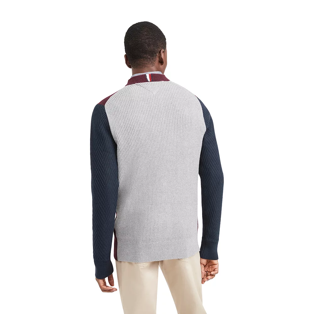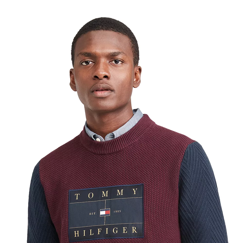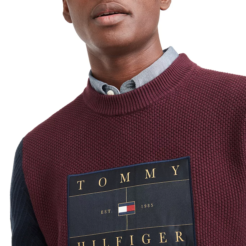 Go from desk to dinner and anywhere in between with this men’s Tommy Hilfiger colorblock flag sweater.