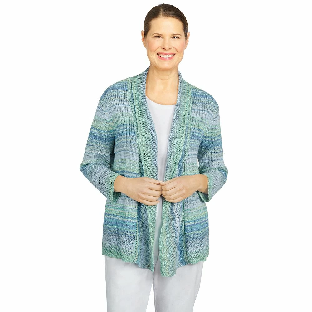 The layering options are endless with this petites’ ombre-striped cardigan from Alfred Dunner.