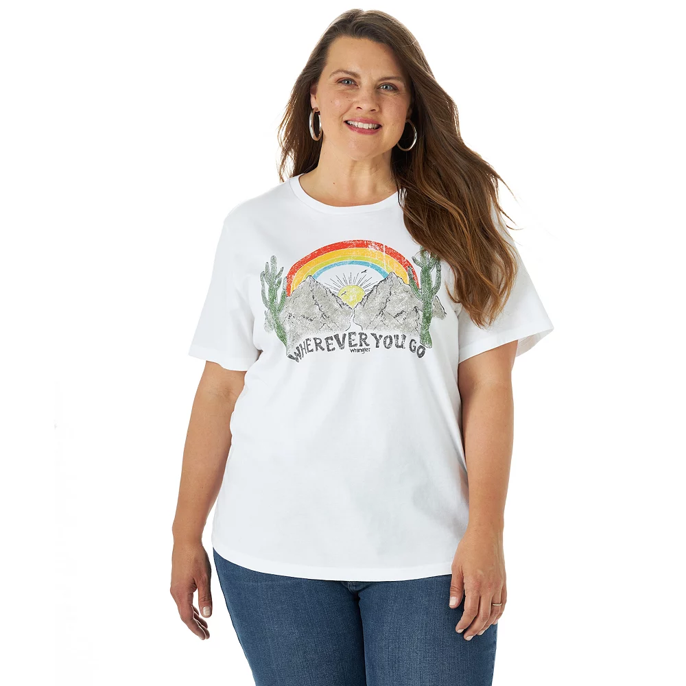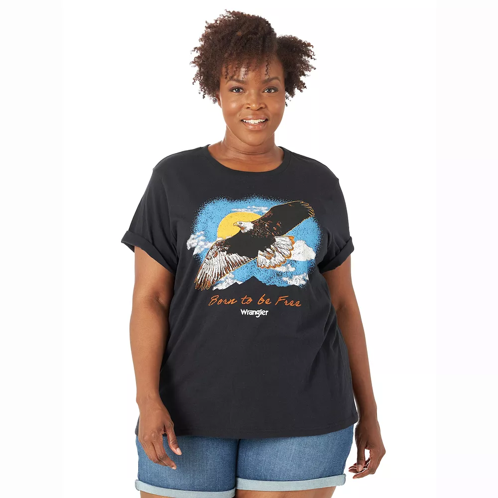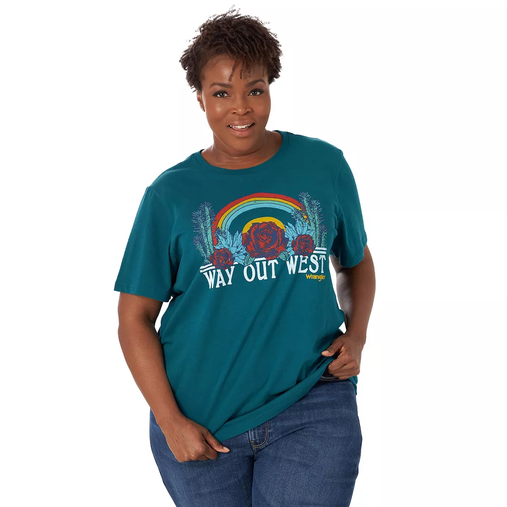 For a casual and cool look that fits your vibe, reach for this women’s Wrangler tee.