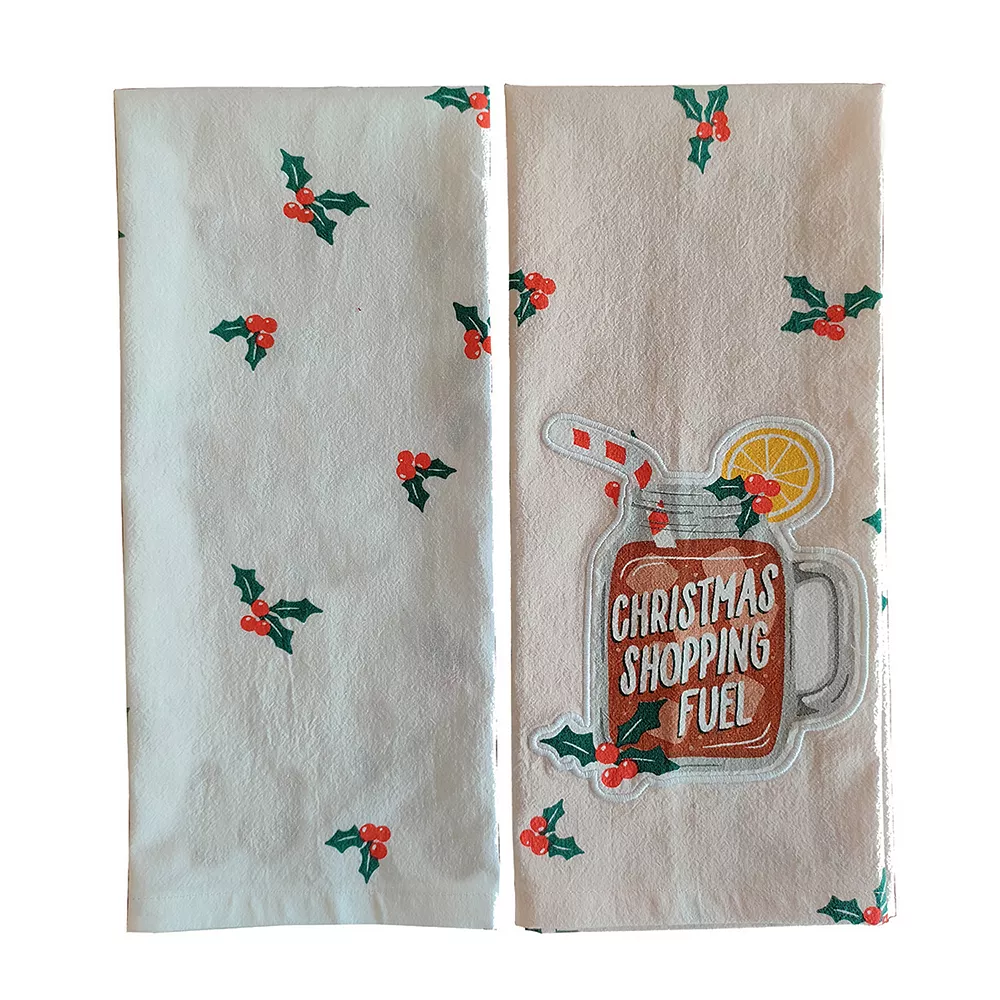 Get your home holiday ready with these St. Nicholas Square Christmas Shopping Fuel tea towels.