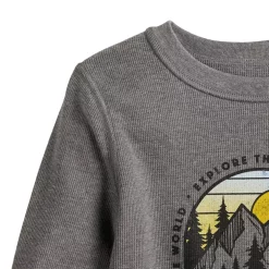 He’ll be ready to take on the cool weather this toddler boys’ thermal graphic tee from Jumping Beans.