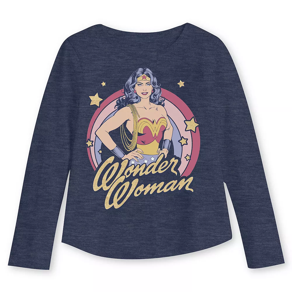 She’ll look super in this toddler girls’ Wonder Woman long sleeve graphic tee from Jumping Beans.