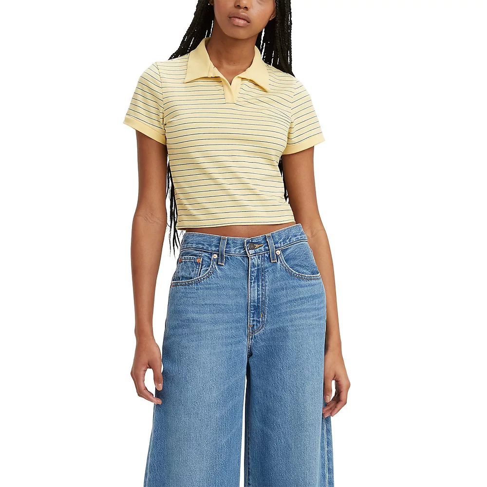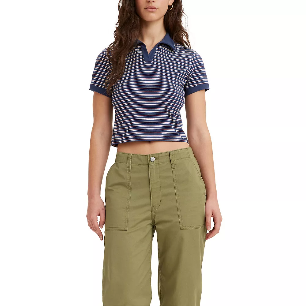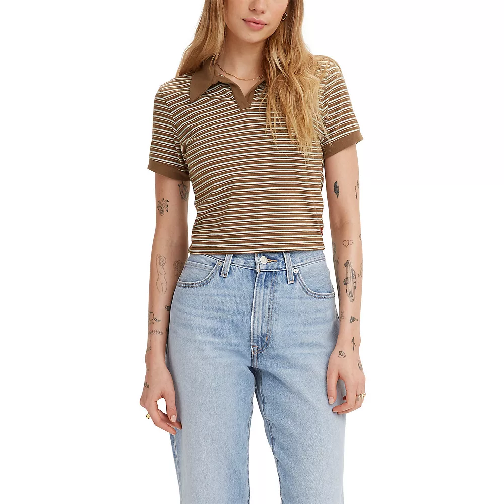Live life on the green with this women’s Levi’s striped polo top. This collared v-neck top channels preppy vibes but with a twist—namely the slightly cropped cut and subtle Levi’s branding.